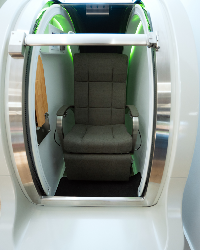 No needles, no effort – just lying back in a comfortable, gently pressurised pod.